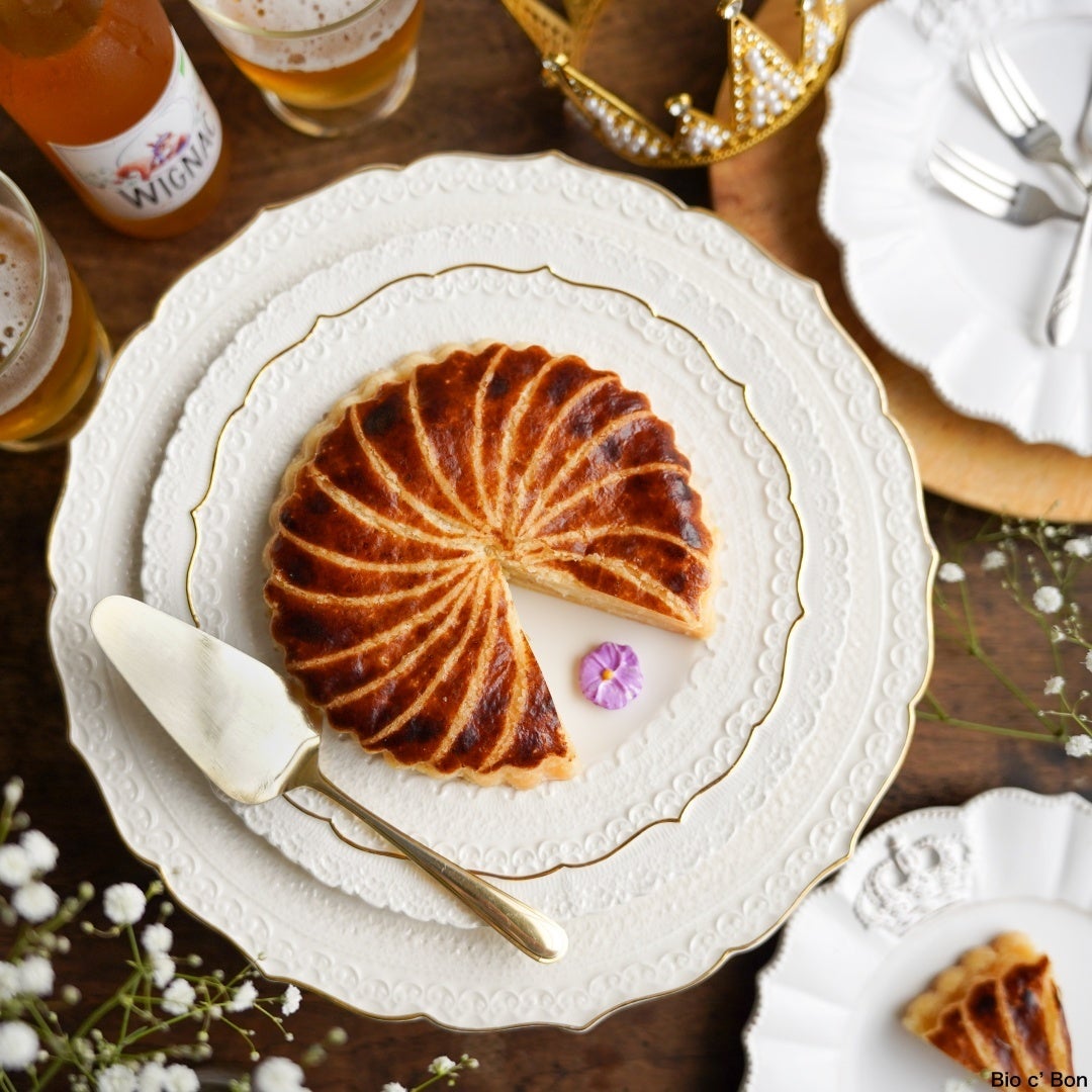 フランスの新年に欠かせない伝統菓子を米粉で作ったグルテンフリーのガレットデロワ。サクサクのパイ生地にアーモンドクリームのハーモニーが絶妙。フェーブの代わりに、有機ローストアーモンドをガレットデロワの中に1つ入れて焼き上げています。