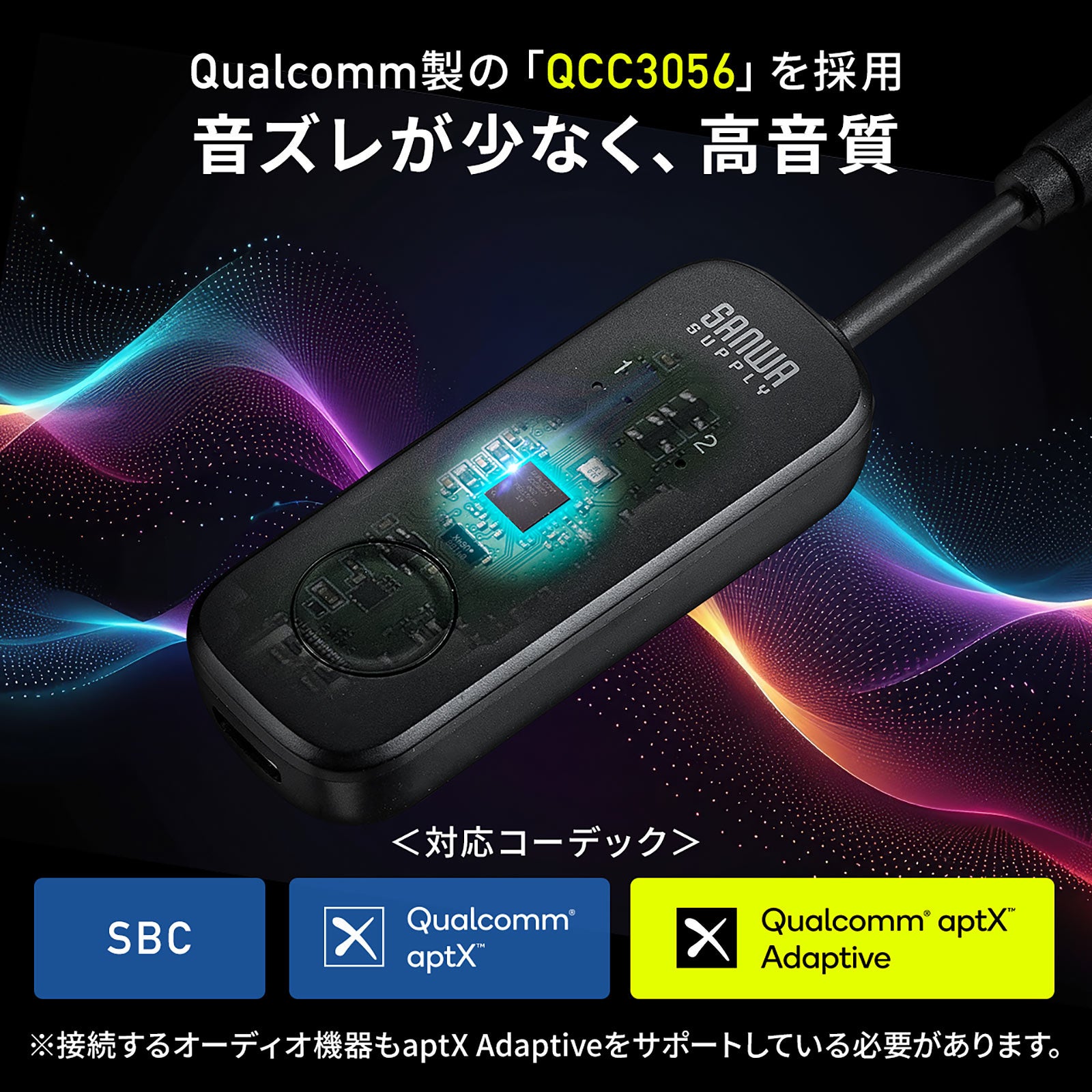 Qualcomm製の「QCC3056」チップを採用しており、TWS(完全ワイヤレス)イヤホンでも安定した接続を実現します。安定した高音質・低遅延コーデック「aptX Adaptive」に対応しています。