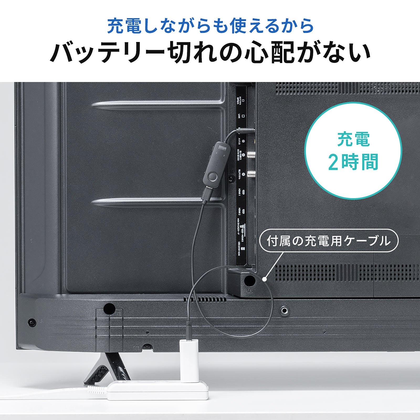 充電しながらも使えるので、テレビに挿しっぱなしで使えます。音量調整ボタン付きで、本製品での音量調整も可能です。