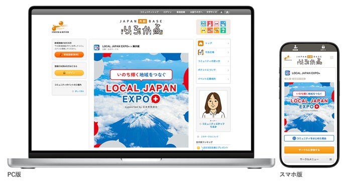 プロフェッショナル・エージェンシー事業を展開する株式会社クリーク・アンド・リバー社(以下C&R社)は、オンラインコミュニティの構築および運営・コンサルティングを行うクオン株式会社と共同で運営するAIファンコミュニティモール「JAPAN共創BASE りろかる」内に、全国の自治体と生活者をつなぐオンライン共創コミュニティ「LOCAL JAPAN EXPO+ supported by 日本首長連合*」(以下LOCAL JAPAN EXPO+)をオープンいたしました。なお、本取り組みは、C&R社と全国の650を超える基礎自治体の集まりである日本首長連合との包括連携協定にもとづく取り組みです。