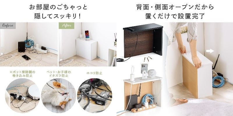 かぶせるだけでスッキリ収納!ごちゃっとしたケーブルや機器を隠してスッキリ収納できるコーナー専用ケーブルボックスを3月5日を発売