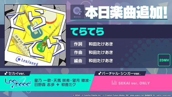 『プロジェクトセカイ カラフルステージ! feat. 初音ミク』和田たけあきさんの書き下ろし楽曲「てらてら」を追加!