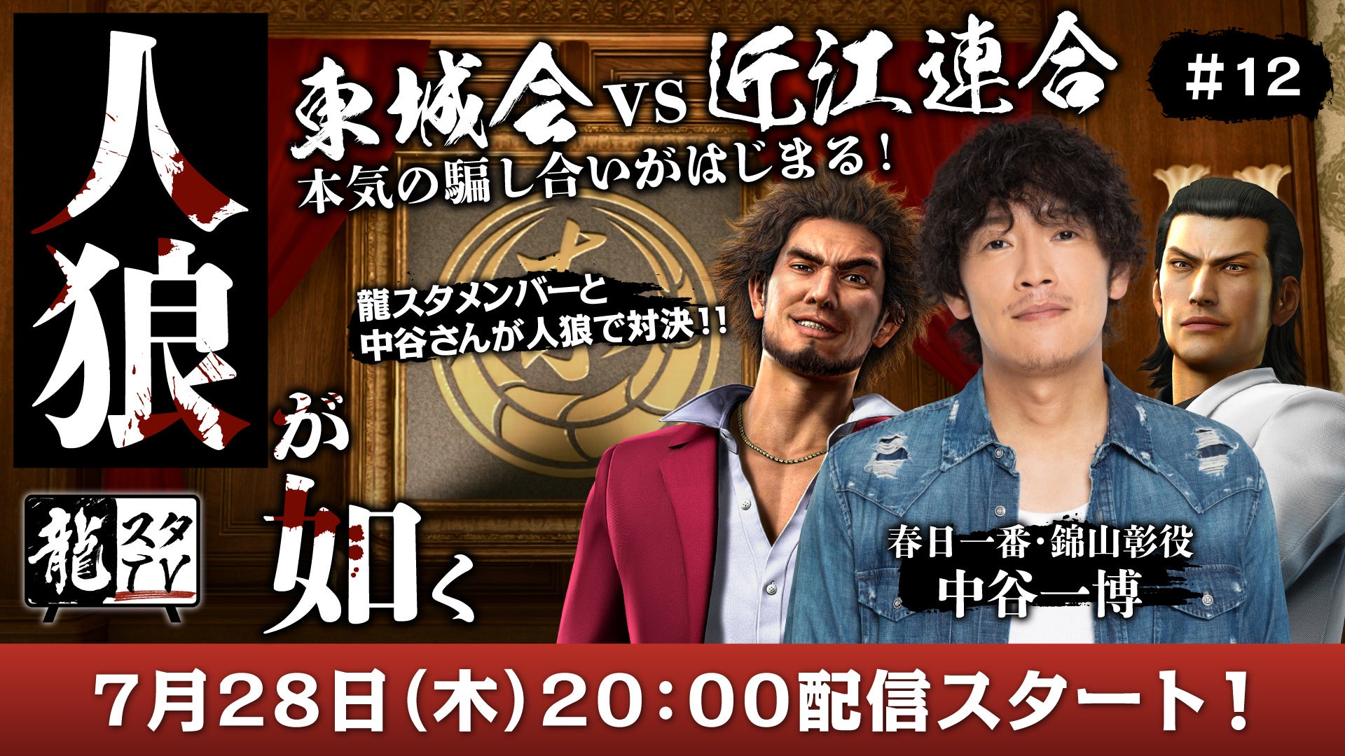 「龍スタTV」第12回の配信は7月28日(木)に決定!龍スタメンバーと中谷一博さんが人狼ゲームで対決!東城会vs近江連合「龍が如く人狼」をお届け!