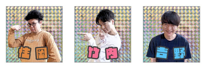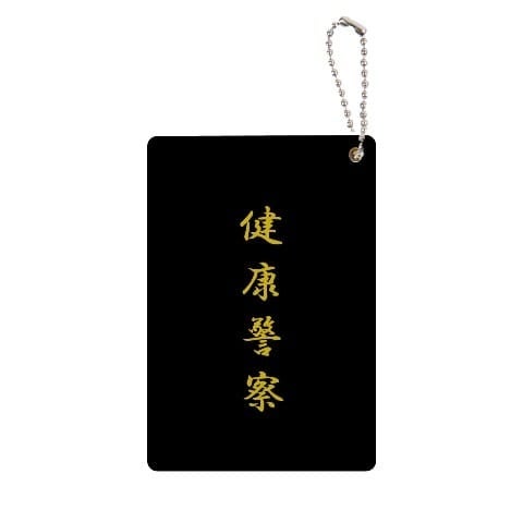 3人それぞれがデザインした缶バッチに、健康警察デザインのパスケースなど