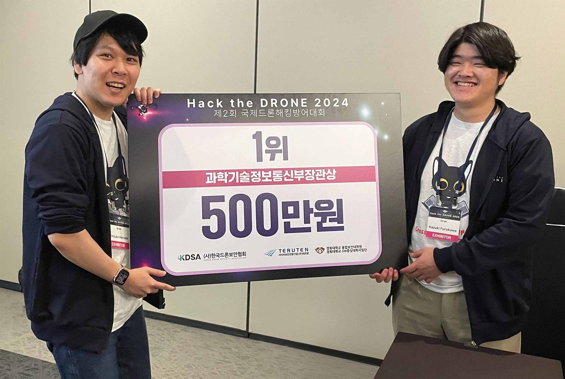 GMOインターネットグループでサイバー攻撃対策事業を展開するGMOサイバーセキュリティ byイエラエ株式会社(代表取締役CEO:牧田 誠 以下、GMOサイバーセキュリティ byイエラエ)の脆弱性調査・研究チーム「GMOイエラエ」は、2024年10月30日(水)に韓国ソウルで開催されたサイバーセキュリティに関する専門知識や技術力を競い合うドローンのサイバーセキュリティコンテスト「Hack the DRONE(ハック・ザ・ドローン)2024 決勝(主催:Korea Drone Security Association / 韓国ドローンセキュリティ協会)」で世界1位を獲得しました。また同日台湾台北で開催された「HITCON Cyber Range(主催:ASSOCIATION OF HACKERS IN TAIWAN / 台湾ハッカー協会、工業技術研究院)」でも世界3位を獲得しました。