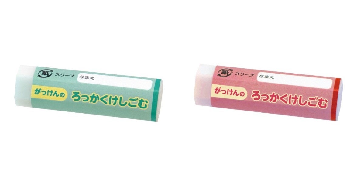 六角形で転がりにくく、握りやすくなっています。濃い鉛筆に対応した消しやすい消しゴムです。