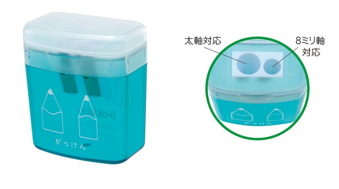 三角鉛筆太軸専用の削り穴と一般的な直径約8ミリの鉛筆用の削り穴の2Way。