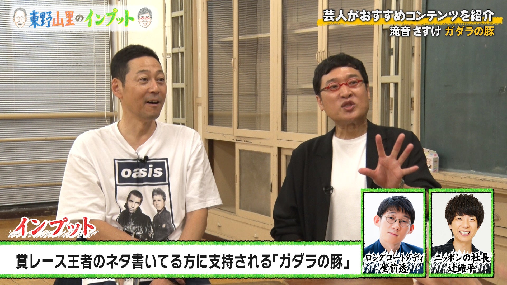 そんななか、東野が次の仕事のため退席する時間となりました。山里は「テレビでこんなこと(MCがいなくなること)あるんですか!?」と驚きます。実は、同じ日に収録していた別の回で、東野自身が関係のない話題を振り、収録時間が押したことが原因でした。東野は「別にBSよしもとをナメてるわけじゃないです。地上波もBSよしもともABCラジオも僕は平等です。本当申し訳ない!」とさすけやスタッフに平謝りします。東野退席後、収録が再開。山里は、さすけのプレゼンの上手さに惹かれながらも、東野に対してあるツッコミを浴びせます。