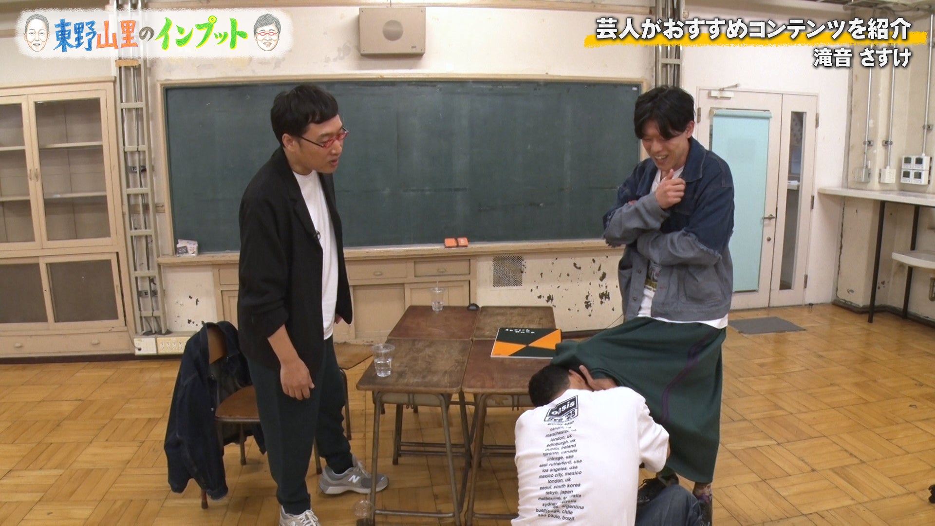 今回、プレゼンターとして登場したのはさすけ(滝音)。個性的なファッションで現れた彼にテンションが上がる東野は、ある行動に出て笑いを誘います。さすけが「別にいいんですけど、こっちの出方次第では(大炎上)みたいなところがありますよ」とツッコミを入れると、東野は「最低や。ごめん」と大笑いしました。