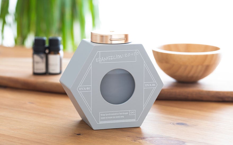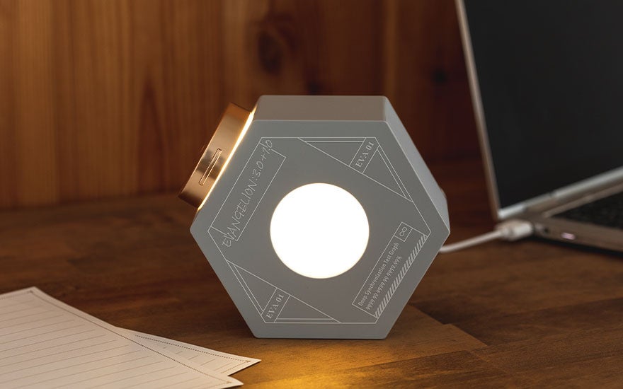 『シン・エヴァンゲリオン劇場版』に登場するモチーフをちりばめた、ヘキサゴン型の超音波式卓上加湿器。