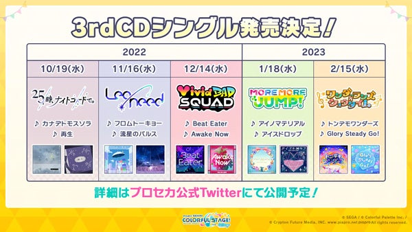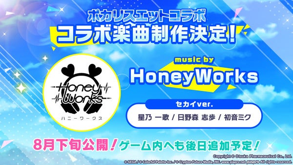 初音ミク、星乃一歌(CV.野口瑠璃子)、日野森志歩(CV.中島由貴)が歌うセカイver.と、バーチャル・シンガーver.の2つの音源が公開予定です。セカイver.は8月下旬公開予定で、ゲーム内にも後日収録予定です。