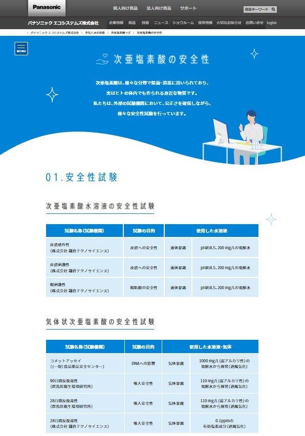 パナソニック エコシステムズ株式会社(以下、パナソニック)は、2022年4月1日、次亜塩素酸技術研究の技術情報と、次亜塩素酸 空間除菌脱臭機「ジアイーノ」のブランド情報の2つのWebサイトを公開いたしました。