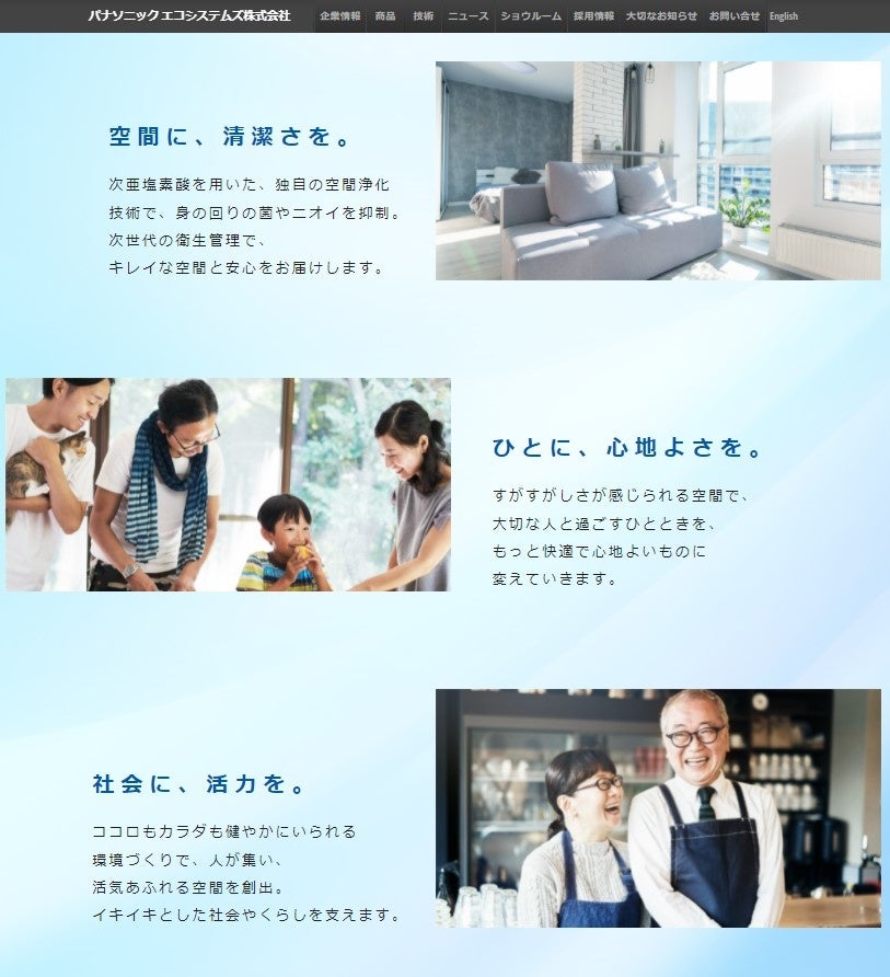パナソニックは、今後もきれいな空気をお客様に提供し、「健康で快適な空気」で暮らしをサポートしていきます。