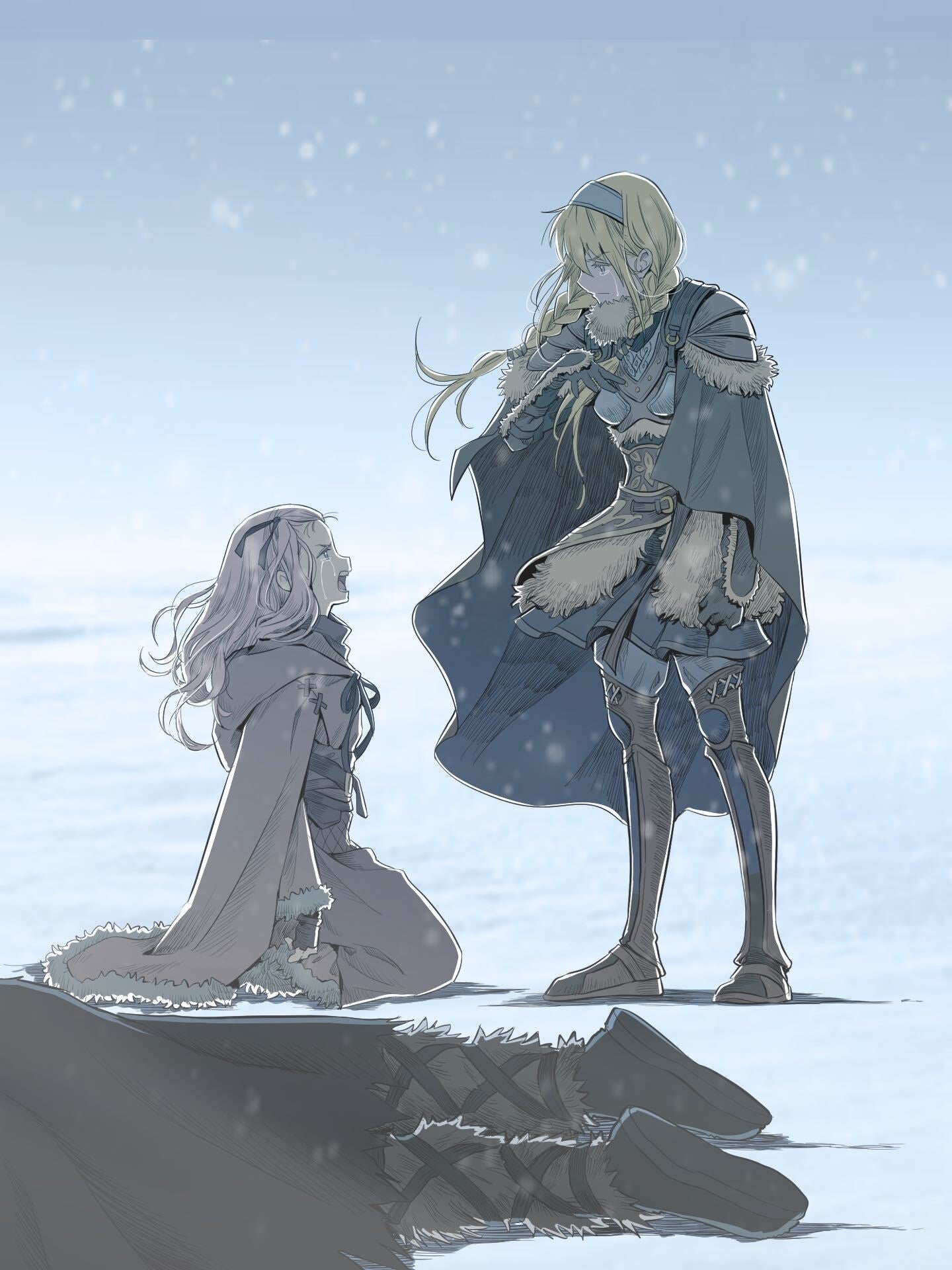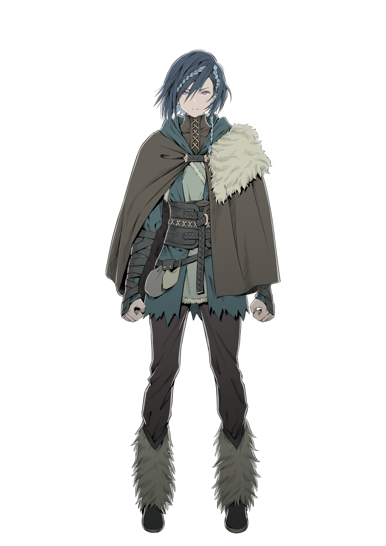 冷静沈着で寡黙。境遇に文句を言いつつも、猛獣の闊歩する雪原で追跡や襲撃に目を光らせている。