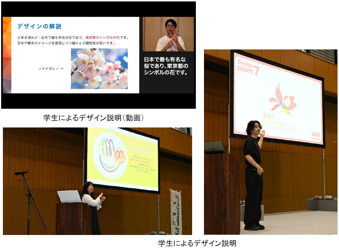 多田さんおめでとうございます。そして、選ばれるまでには沢山の方々の関わりがありました。この最終候補案の3つのデザイン以外にもたくさんの学生さんがデザインを考えてくださいました。心より御礼を申し上げたいと思います。そして、ご指導いただきました筑波技術大学の先生をはじめ、 関係者の皆さんにも御礼申し上げたいと思います。ありがとうございました。