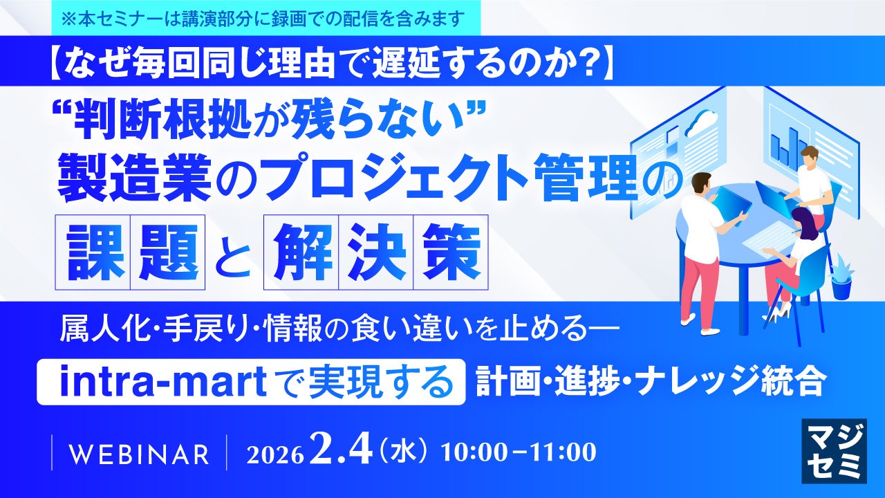 マジセミ株式会社は「【なぜ毎回同じ理由で遅延するのか?】“判断根拠が残らない”製造業のプロジェクト管理の課題と解決策」というテーマのウェビナーを開催します。