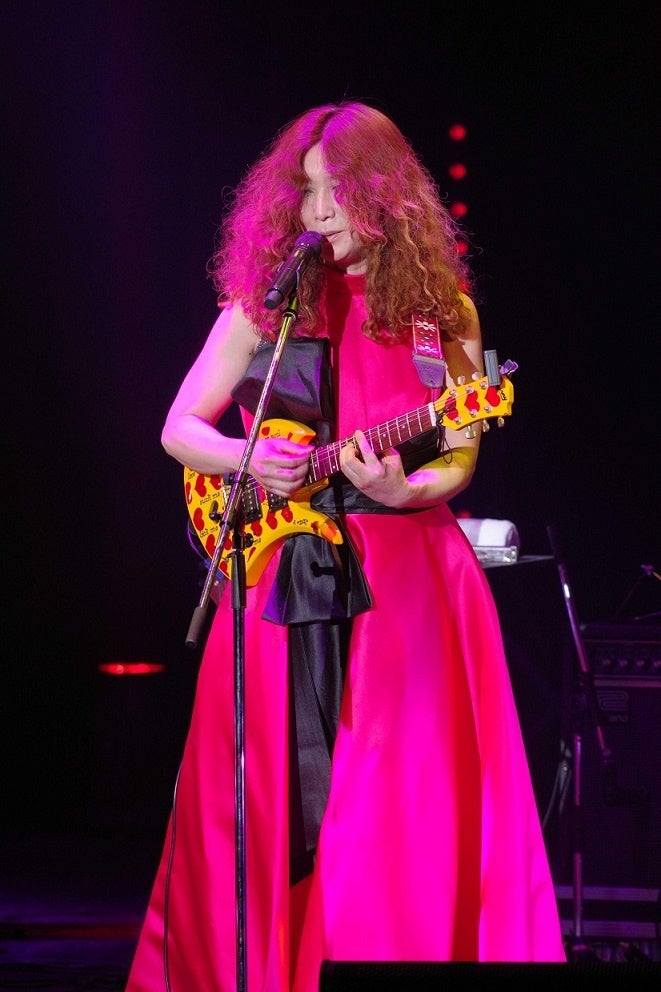 二部はピアノとヴァイオリンとベースを従えたバンド編成のステージ。花びらを模した黒いヘッドドレスに鮮やかなピンクに黒をあしらったドレスで登場し、「サントワマミー」や自身のハーモニカとギタレレの演奏による「湯の町エレジー」(近江俊郎)、エレキギターでの「堕天使ロック」(ジャックス)など幅広いジャンルでタブレット純の世界を披露。