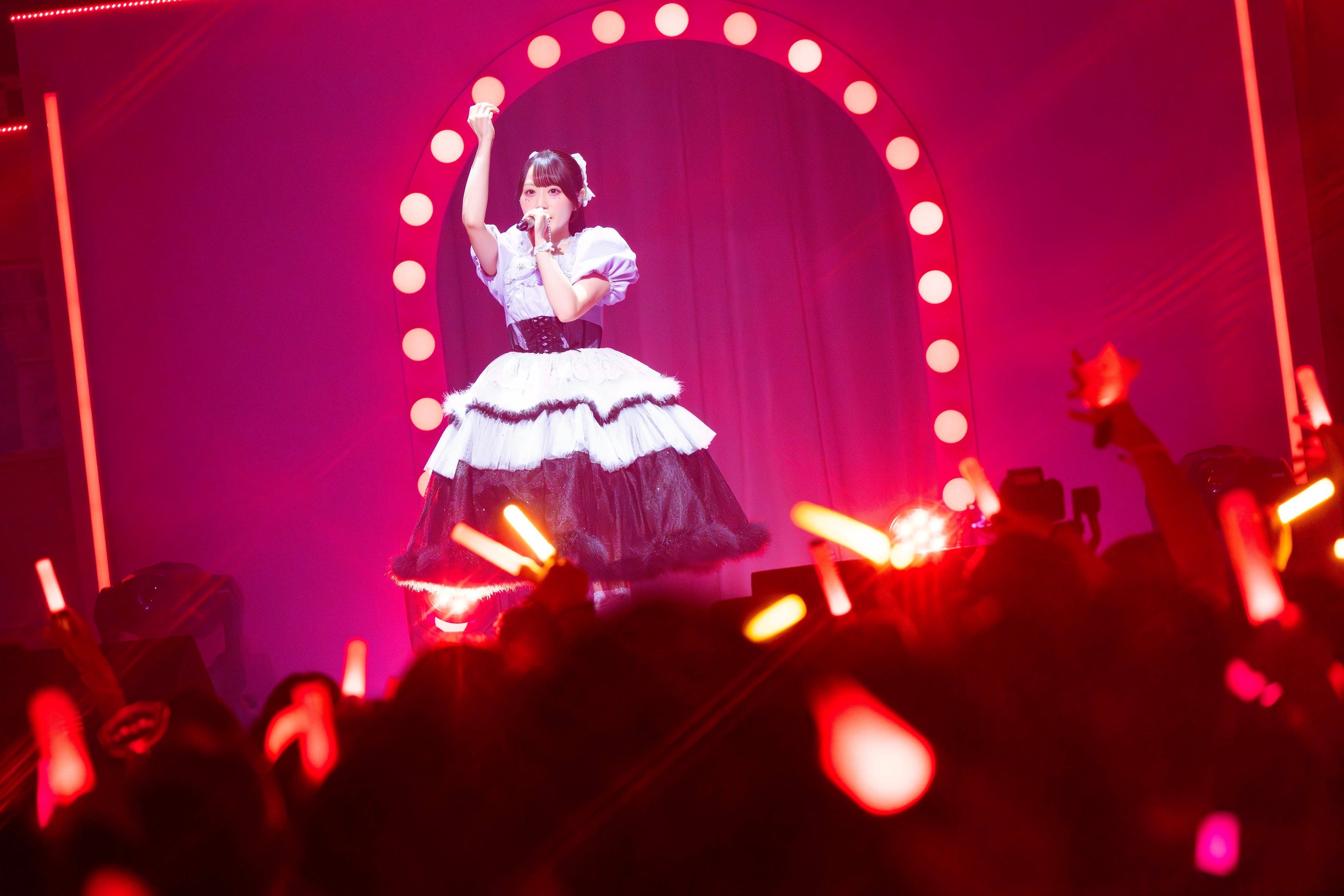開演時間の15時を回り、オープニング映像がスクリーンに映し出されると、客席からは一気に歓声が上がる。そして、ピンクを基調としたキュートな衣装に身を包んだ小倉がステージに登場すると、会場の盛り上がりも一気に最高潮。オープニングナンバーは「すうぃ~と♡ぱーてぃー」で、衣装も「すうぃ~と♡ぱーてぃー」のLyric Videoで使用されたイラストを再現したものとなっていた。