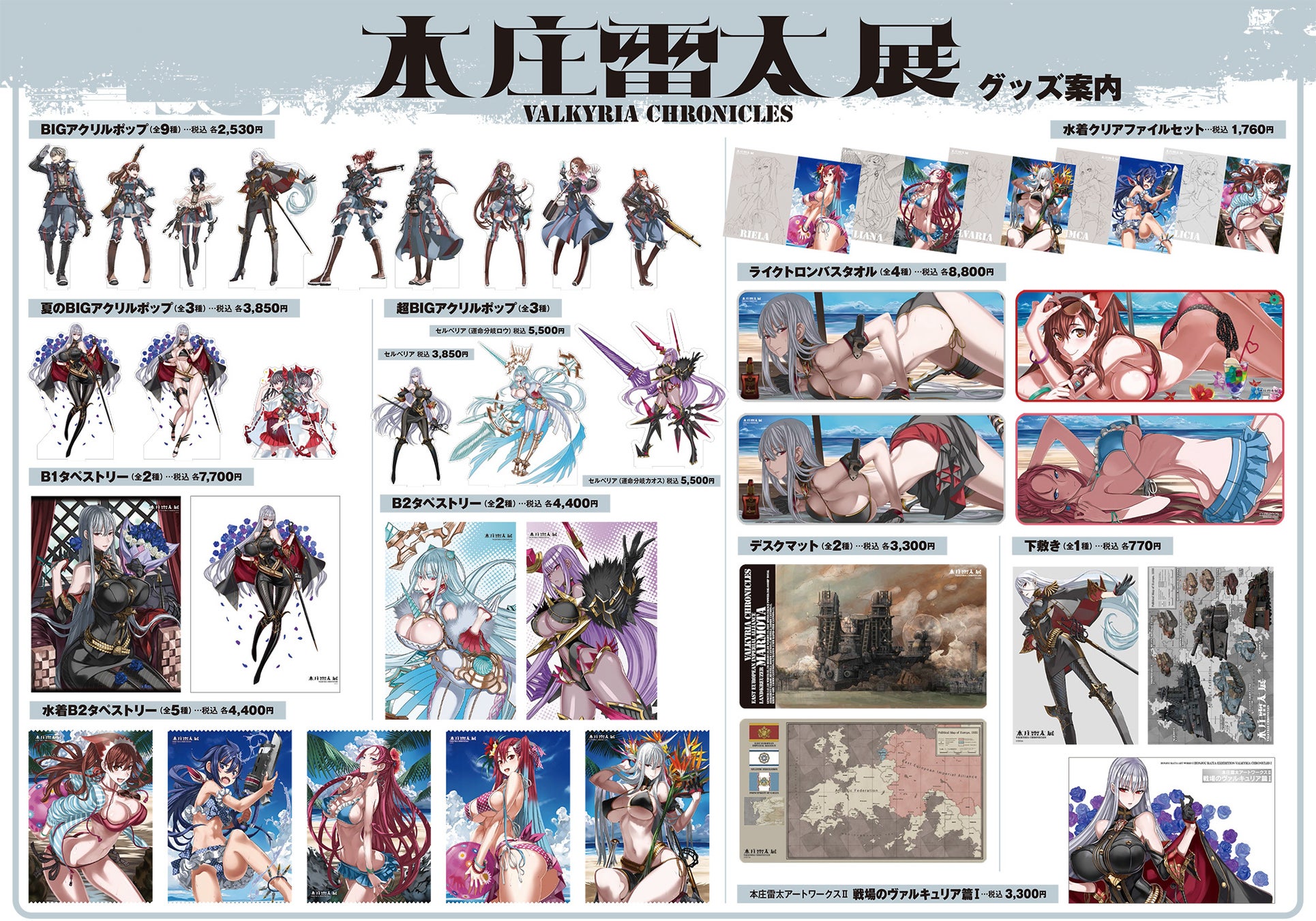 ●本庄雷太&戦場のヴァルキュリア展 水着B2タペストリー全5種(リエラ、ユリアナ、セルベリア、イムカ、アリシア)
