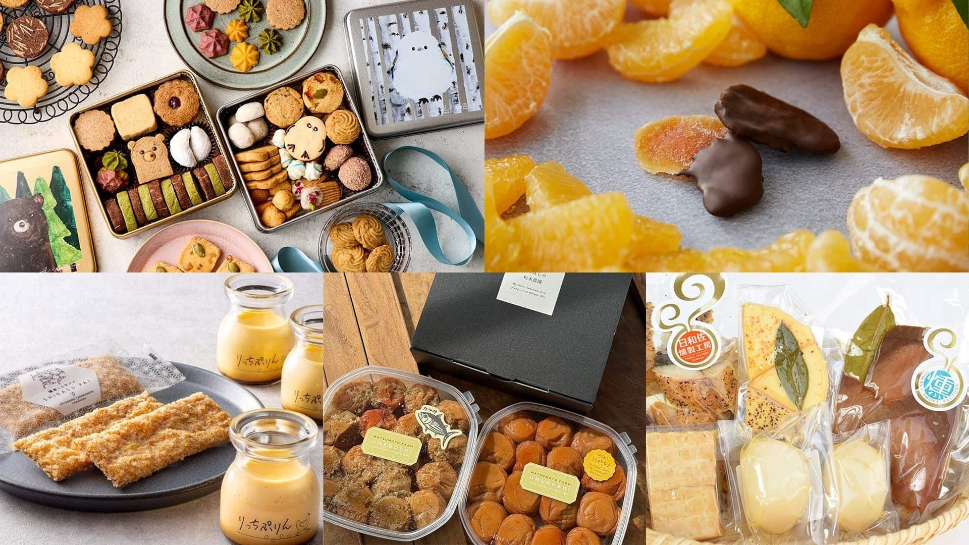グルメギフト:左上から、オレンジページ、よなフル、パティスリー・ユキノシタ・鎌倉、松本農園、徳島スモーク