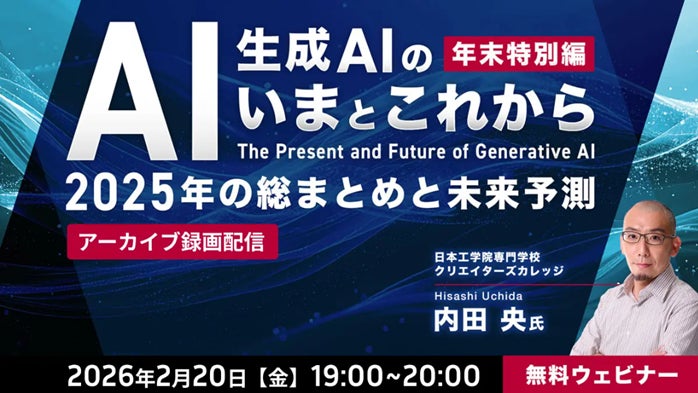 【生成AI】2026年注目すべき技術や活用の方向性は?2025年の総まとめとともに解説!2/20(金)好評セミナー「生成AIの“いま”と“これから”」のアーカイブ映像を無料配信‼