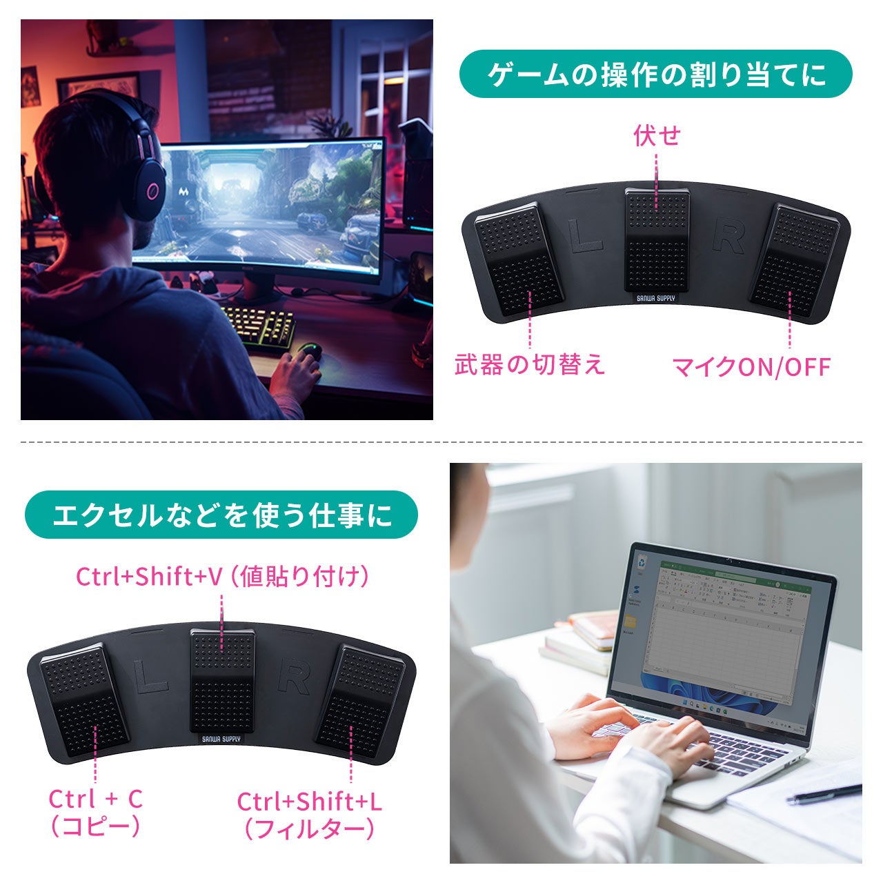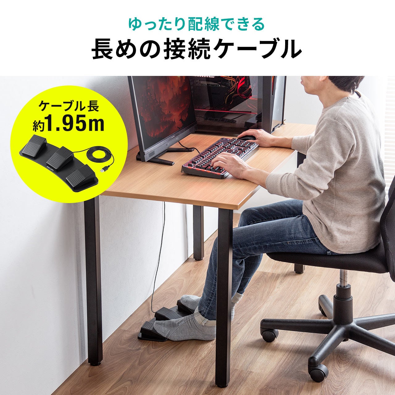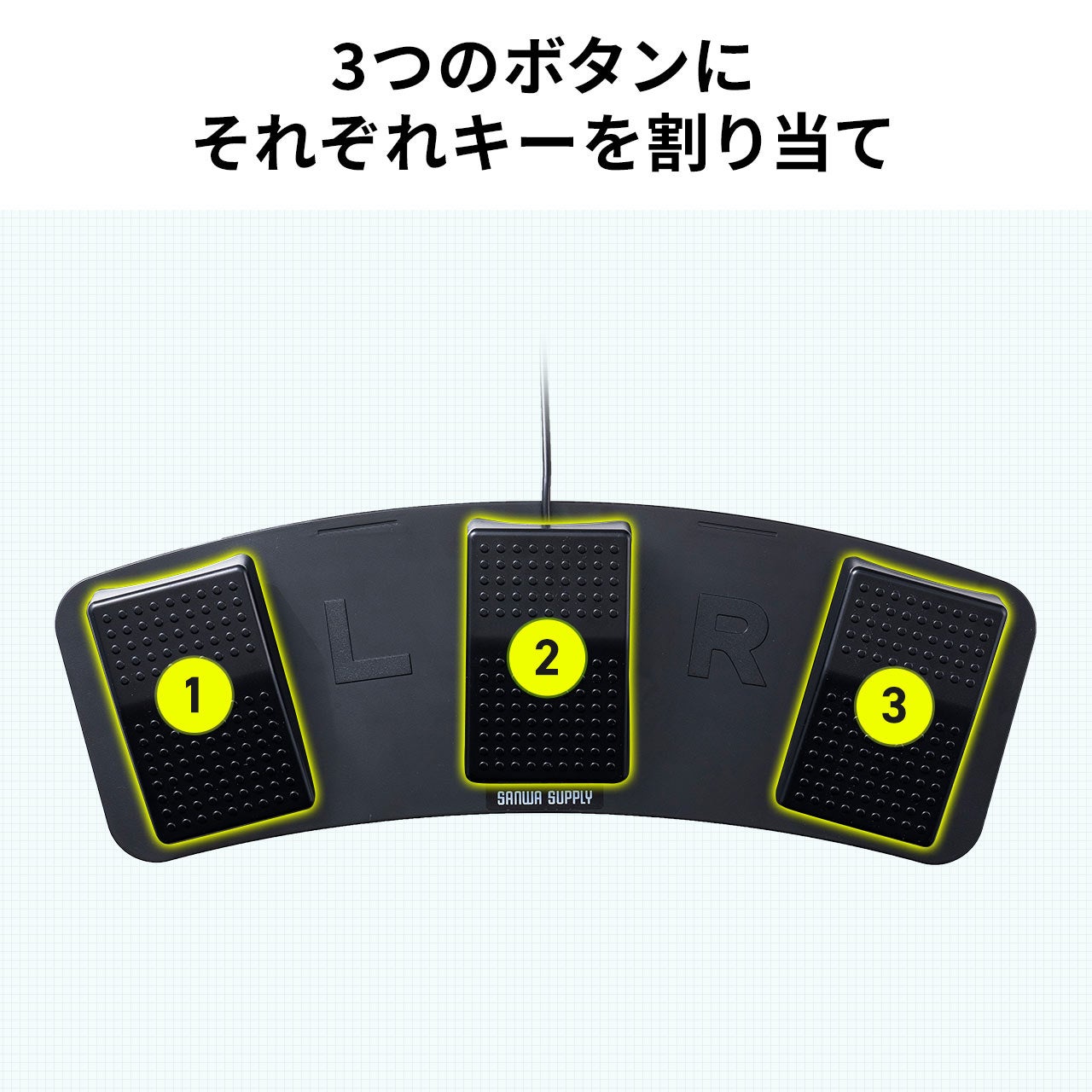 本製品は、足でパソコンを操作することができる有線式USBフットペダルです。