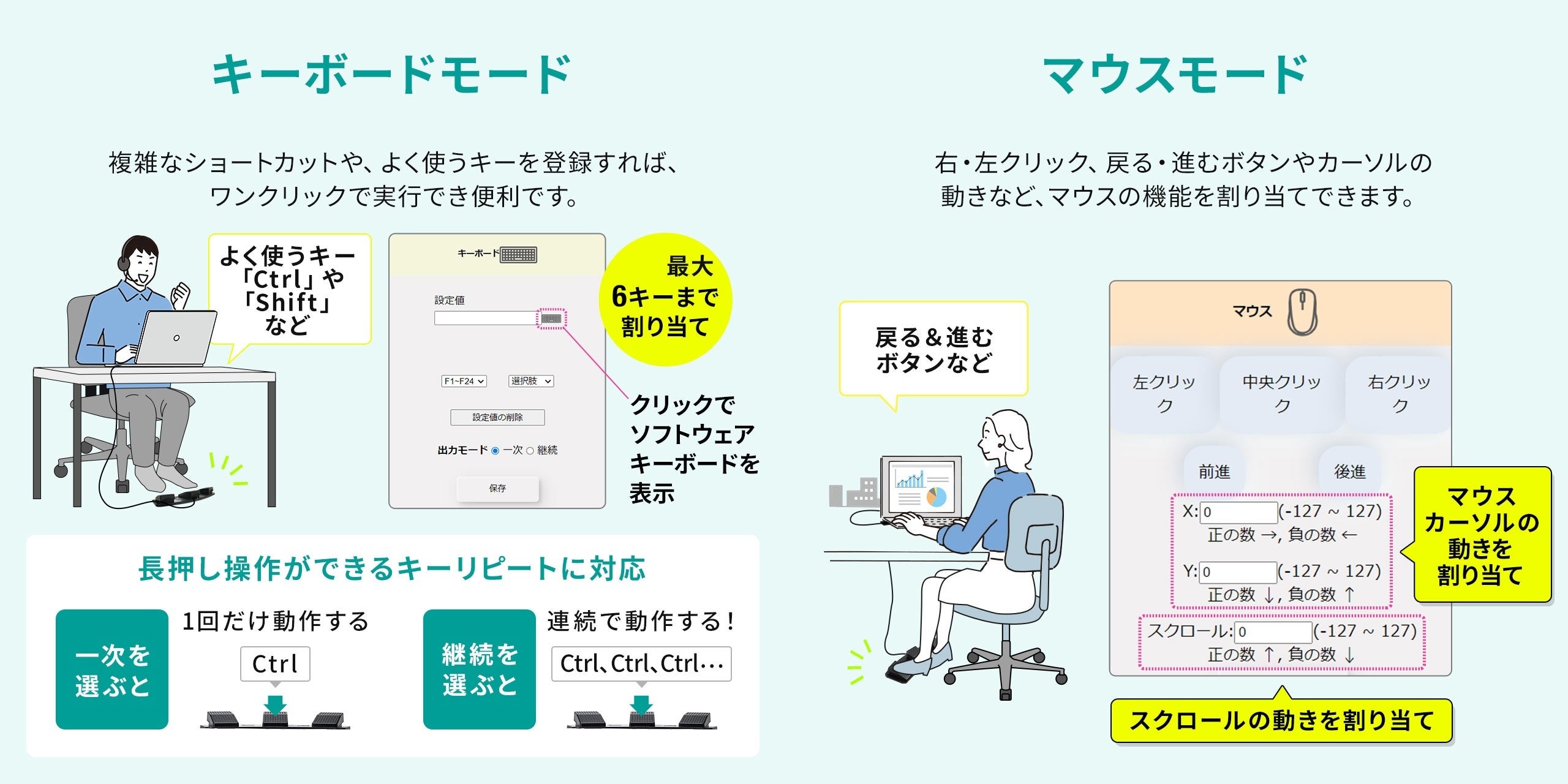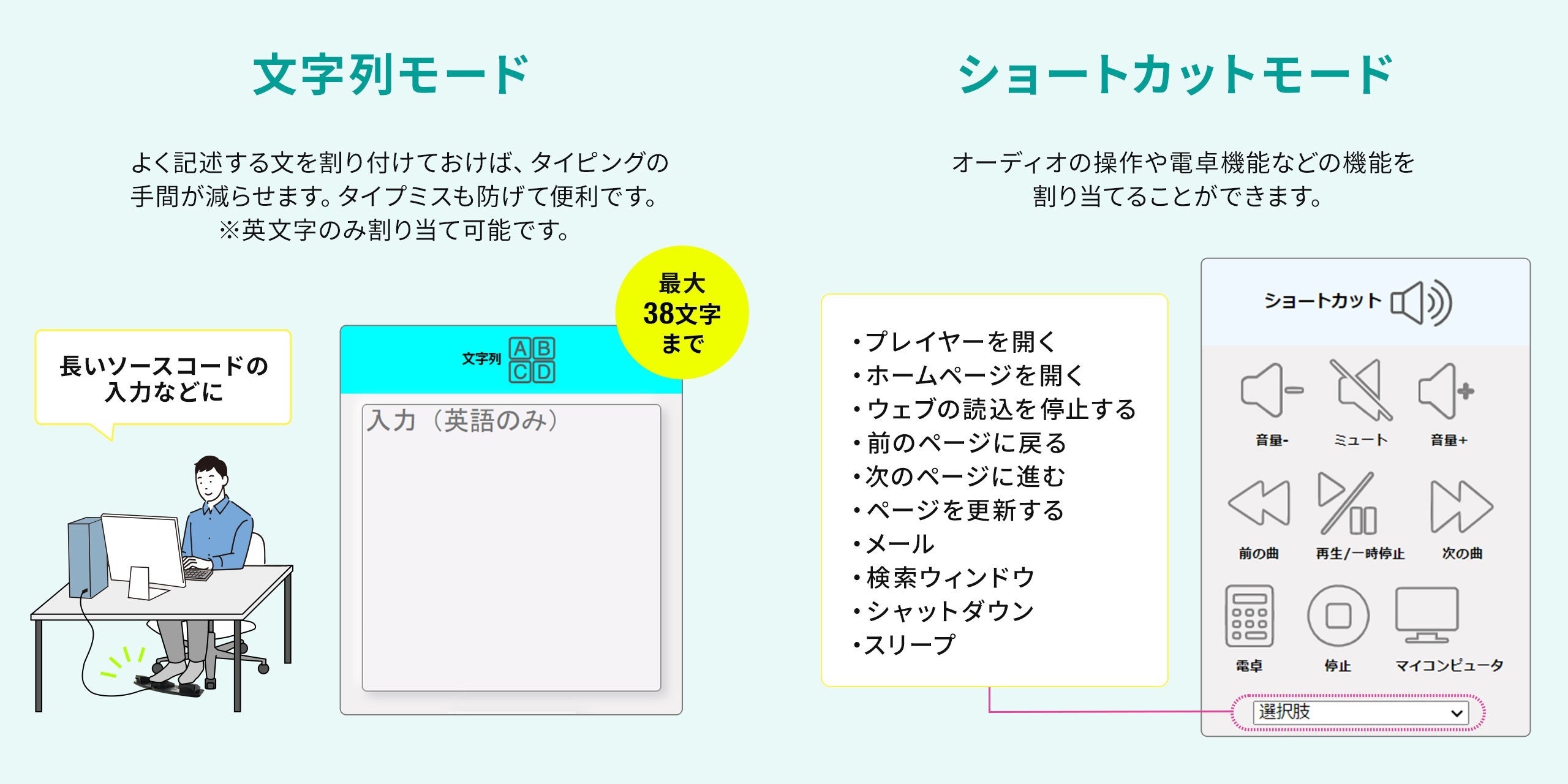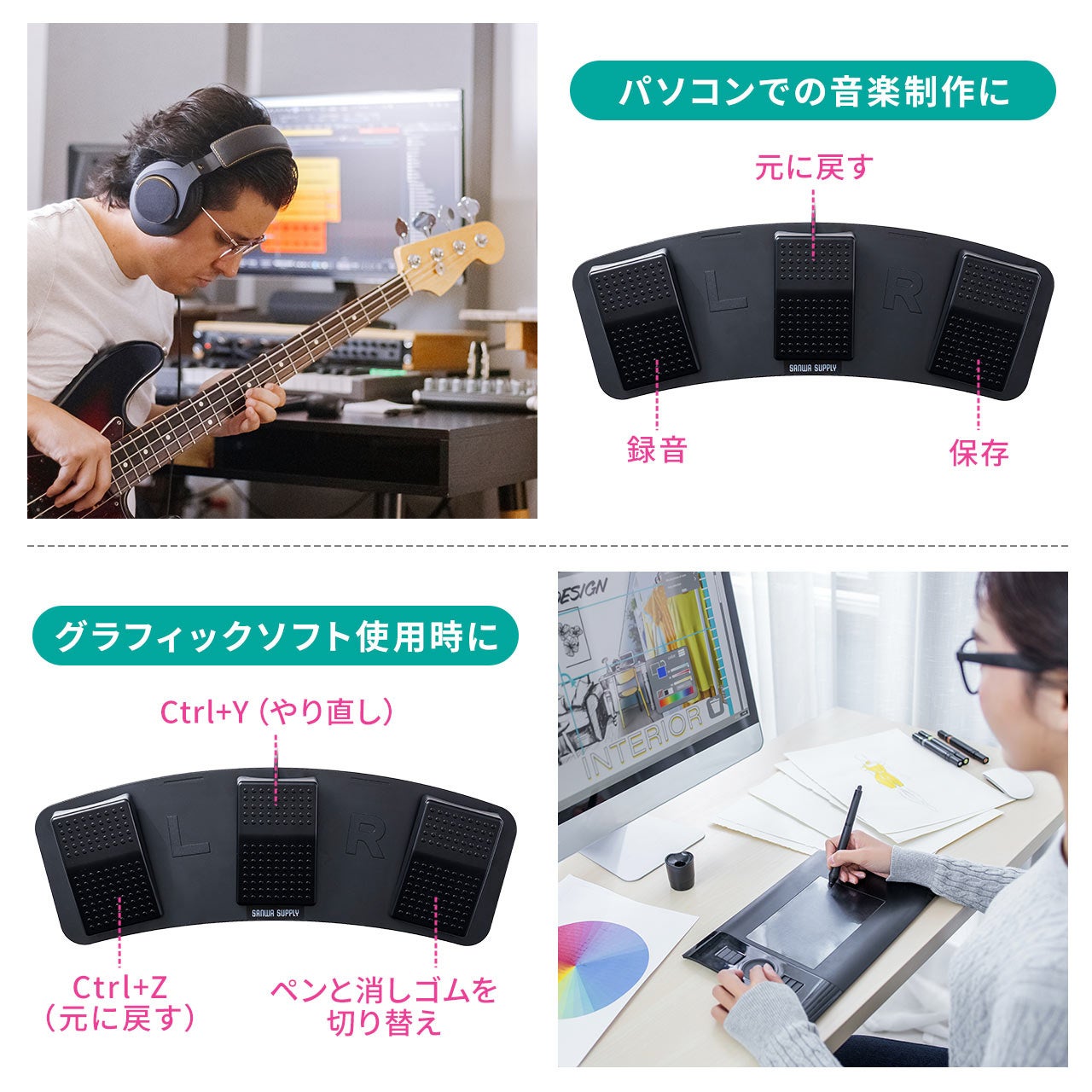 本製品は、足でパソコンを操作することができる有線式USBフットペダルです。