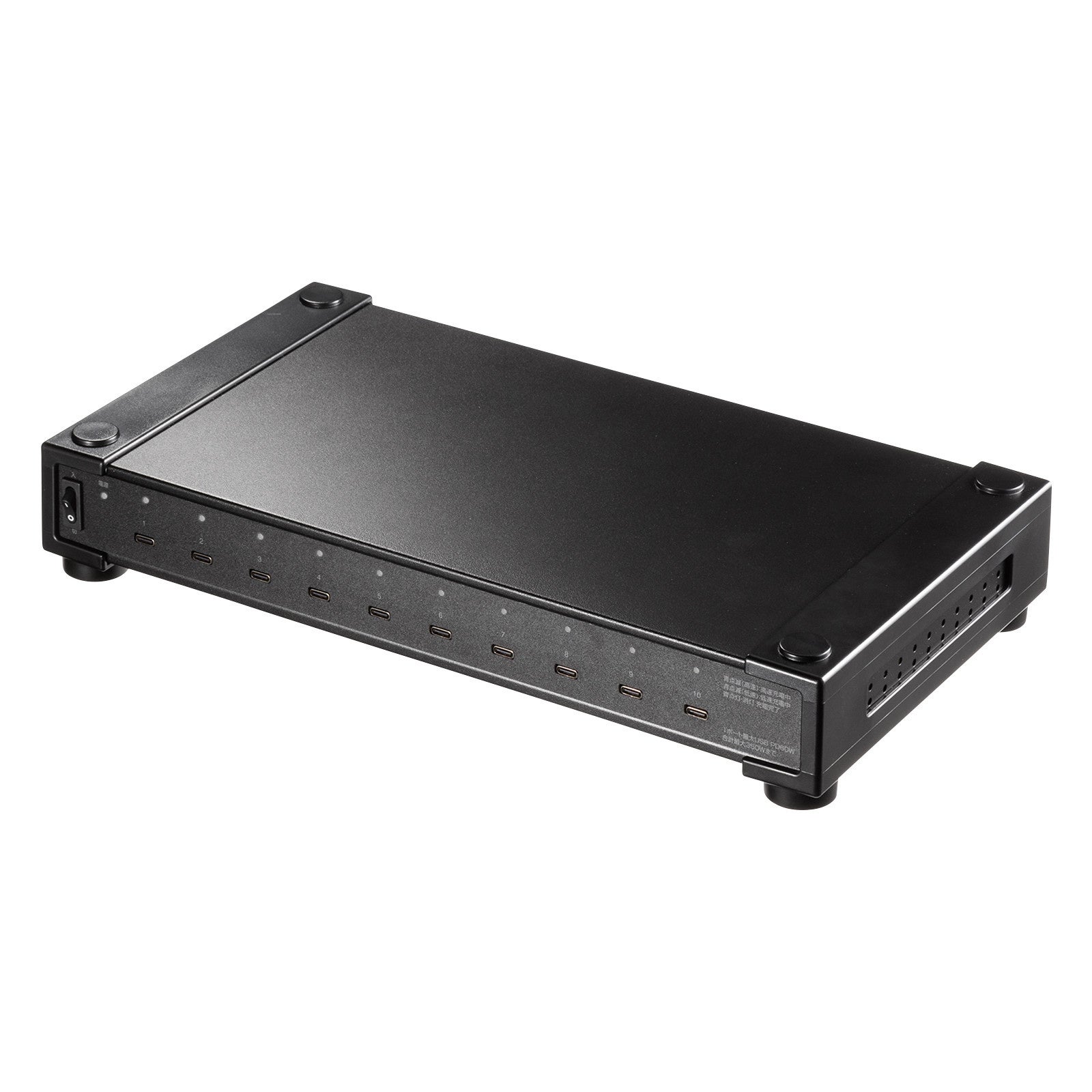 各ポートはUSB Power Delivery(USB PD)規格最大60Wに対応しているため、タブレット、スマートフォンなどを最大10台まとめて充電できます。