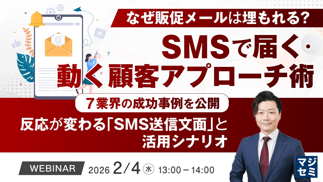 マジセミ株式会社は「なぜ販促メールは埋もれる?SMSで届く・動く顧客アプローチ術」というテーマのウェビナーを開催します。