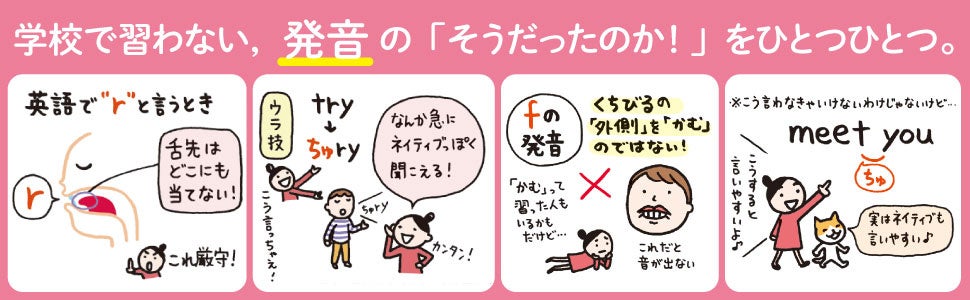 正しいポイントさえ押さえれば、だれでも・何歳からでも、英語の発音はぐっと上達できます。また、1レッスン1見開きのスモールステップだから、忙しい人でも気軽に始めることができます。ぜひ本書で、英語の発音を楽しみながら学んでみてください。