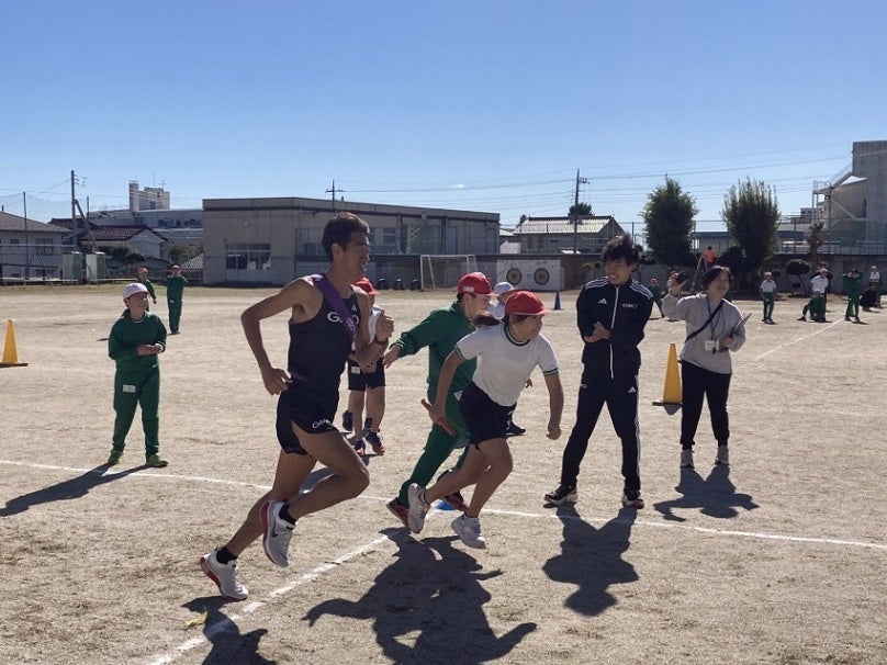 当日は、赤城山から吹き下ろす強い北風「赤城おろし」が吹きつける中ではありましたが、普段なかなか触れ合う機会のない陸上選手たちと一緒ということもあり、児童たちには元気に走りを楽しんでもらえました。