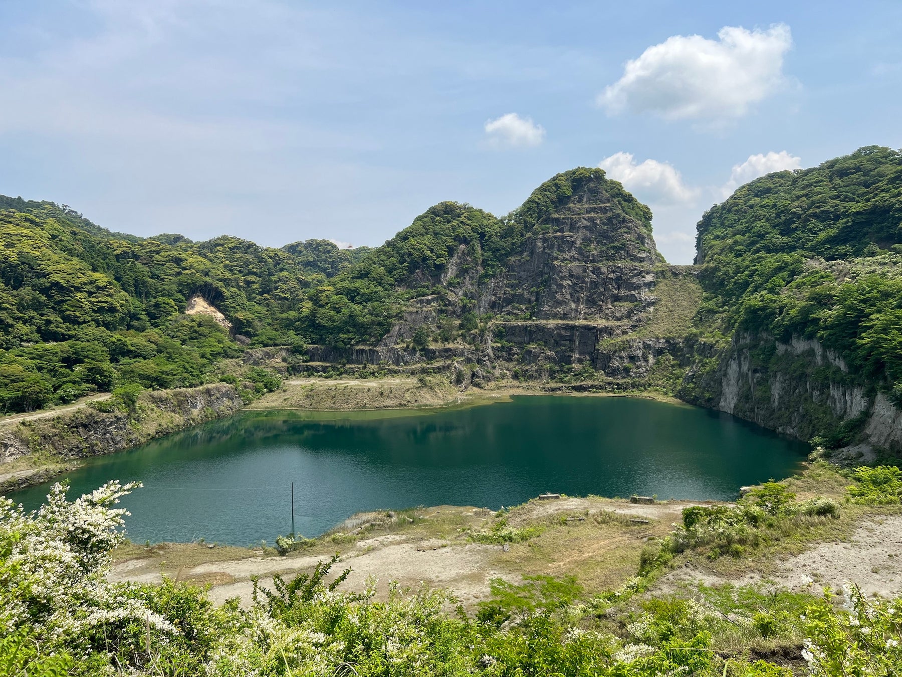 鋸南町にある「元名採石場跡地」は、1971年に採石事業の登録がなされ、その後32年間、岩石採取がおこなわれました。岩石採取が終了した数年後、東京ドーム約6個分の広大な土地とそのロケーションに注目が集まりました。