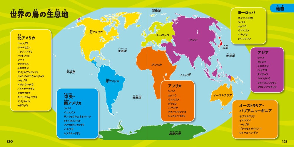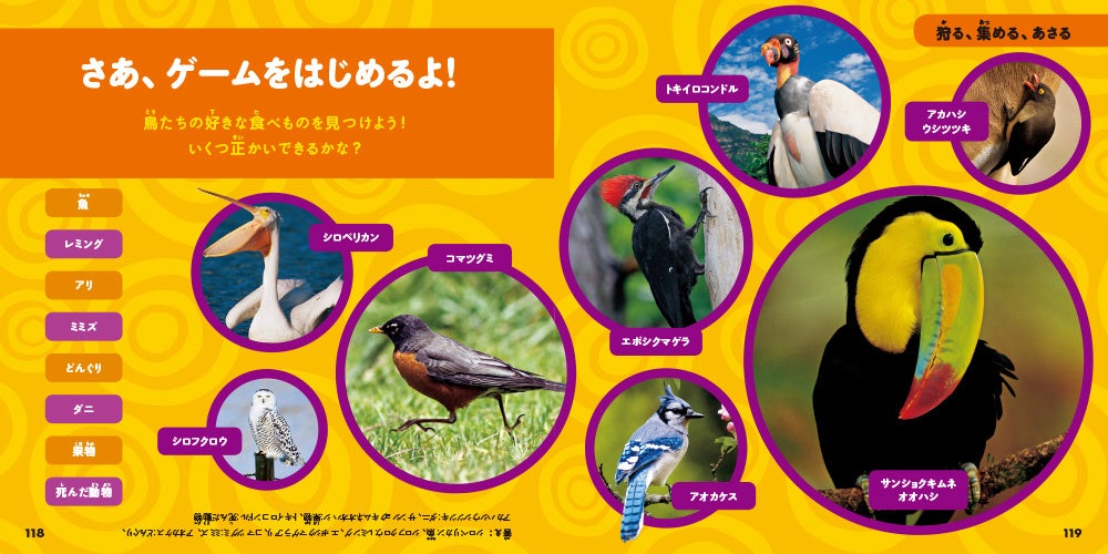 色鮮やかな写真と興味をそそる解説つきで、世界中のさまざまな鳥の知られざる特徴や生態を紹介しています。