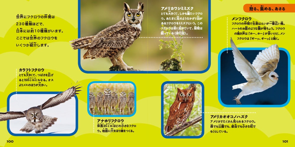 ・アナホリフクロウ/アメリカオオコノハズク/アメリカワシミミズク/カラフトフクロウ/シロフクロウ/メンフクロウ