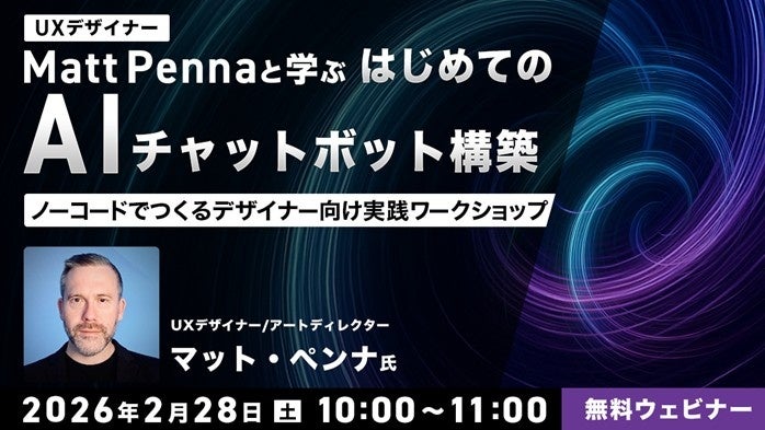 株式会社クリーク・アンド・リバー社(C&R社)は2月28日(土)、UXデザインにAIを活用したいデザイナーの方などを対象に、無料のオンラインセミナー「UXデザイナー Matt Pennaと学ぶ はじめてのAIチャットボット構築 ~ノーコードでつくるデザイナー向け実践ワークショップ~」を開催します。なお、本セミナーは、全編英語で行いますが、同時通訳を通して日本語でお聞きいただくことも可能です。