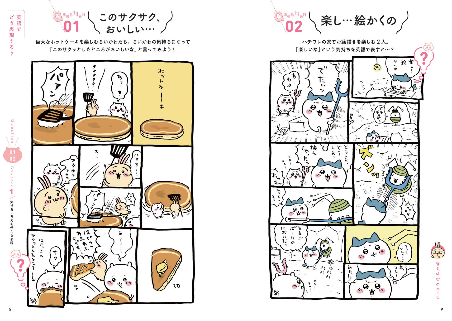 本書は、「ちいかわ」に登場するキャラクターたちの「気持ち」や「言葉」について「英語で何と言うか?」を考えることで、使える英語を身につけることができる本です。
