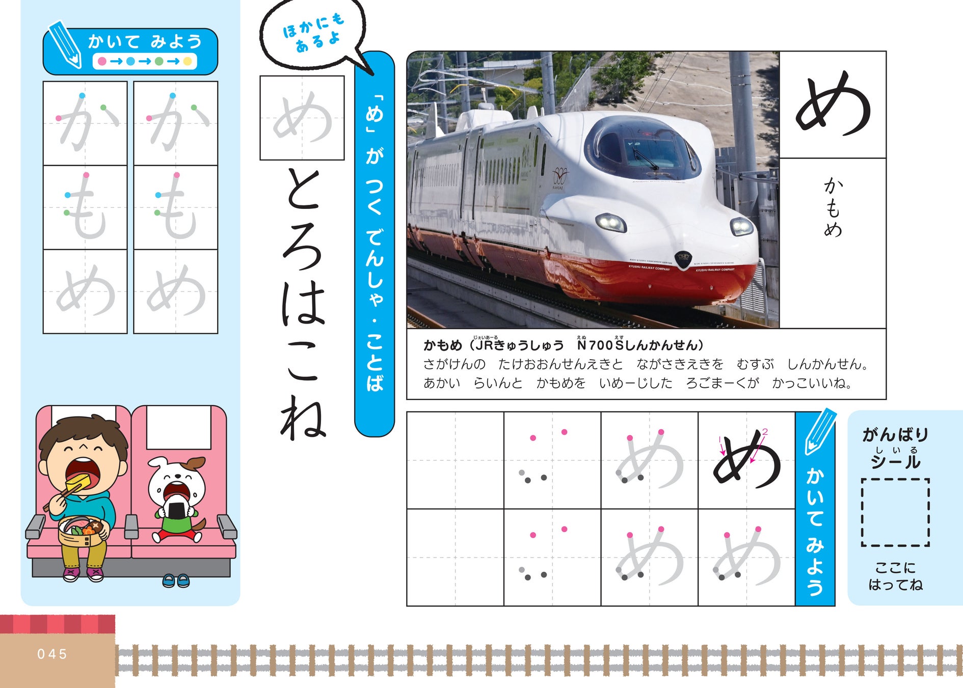 【新しく開通した電車も多数掲載!】「はやぶさ」「かもめ」……電車の名前で楽しくひらがなを覚えるワークが、より充実してリニューアル!