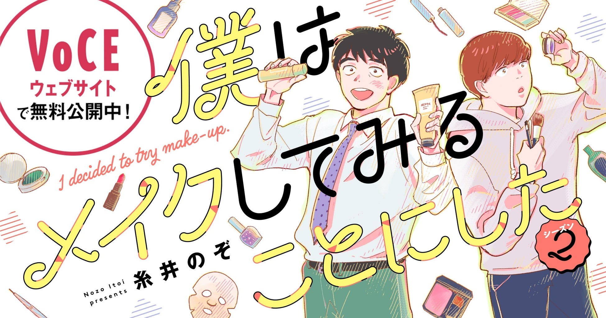 『VOCE』ウェブサイト発、セルフケアに着目した『僕はメイクしてみることにした(以下、『僕メイク』)』。大好評だったシリーズのシーズン2がスタート。読者からの「恥ずかしいから、買いたいのに買えない」「何を選んだら良いのかわからない」といった声に応えたいと、@cosme にオファーをし、トリプルコラボが実現。美容初心者の方の「一歩を踏み出す勇気」を応援するため、@コスメTOKYOの店頭と、VOCE、@コスメの両サイトでのキャンペーンがスタートします。