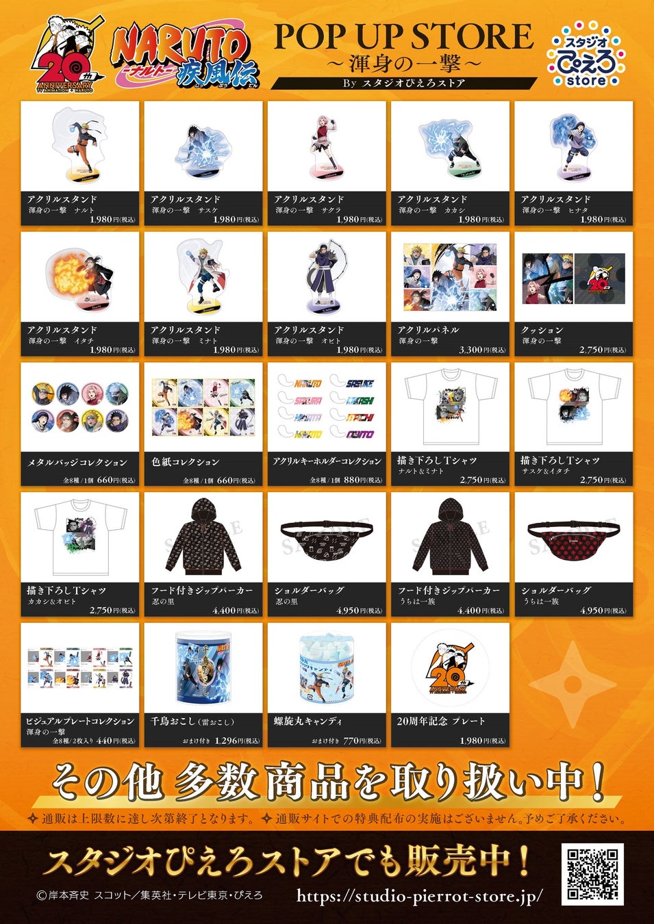 『NARUTO 20周年記念 POP UP STORE ~渾身の一撃~ By スタジオぴえろストア』開催決定!描き下ろしイラストグッズなど新商品が登場!