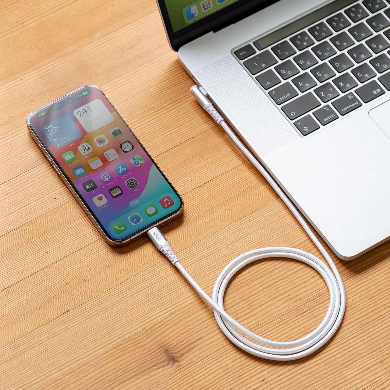 ケーブルにはシリコンメッシュケーブルを採用しており、柔軟性があり絡まりにくいため、持ち運びにも便利です。
