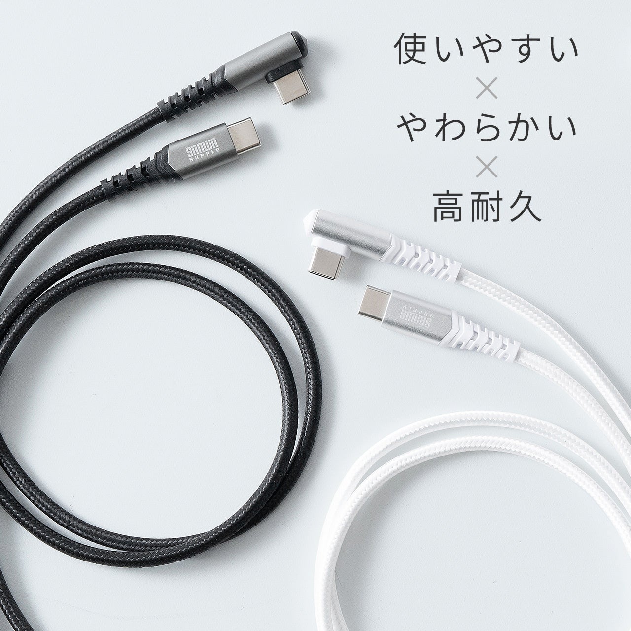 やわらかくて高耐久な片側L字のType-Cケーブル、PD100/240Wで各2色の全4種類を発売