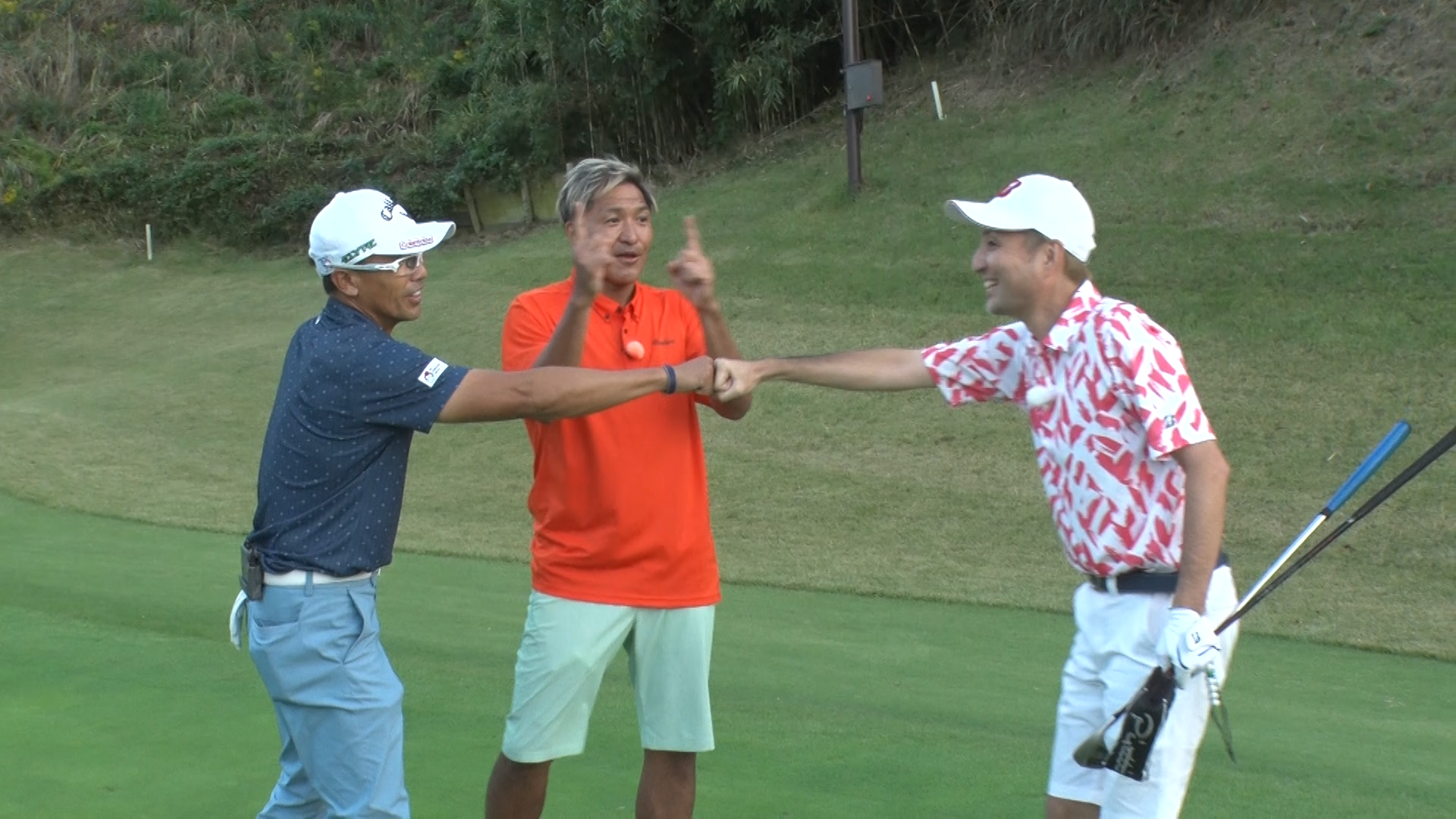 今回の芸人ゲストは、スリムクラブ(真栄田賢、内間政成)、プロゲストは、オール巨人の息子・南出仁寛プロで、「ゴルフ5カントリーオークビレッヂ」にて行われたレギュラーチームとゲストチーム対決の後半戦です。前半戦は勝負が拮抗していましたが、果たしてどのような結果になるのか!?