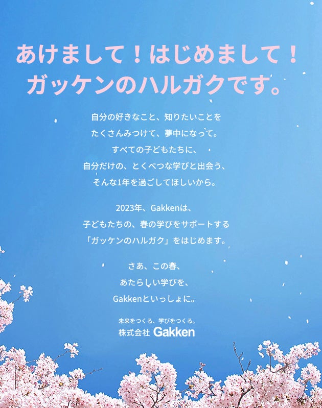 春は、入学や進級といった新しい節目のときであり、新たな学びをはじめるときでもあります。どんな学びがあるのか。どんな学びが自分の子どもに合うのか。学びを探し、学びを再検討するときです。そのタイミングに合わせて、私たちGakkenは、さまざまな学びの提案や学びを応援するキャンペーンを実施してまいります。