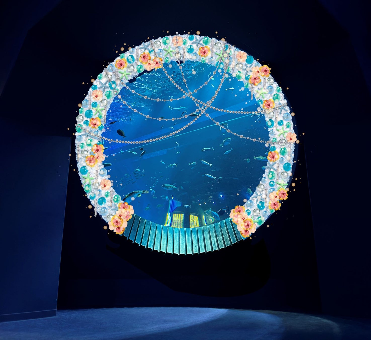 大水槽を眺めることのできる円窓にリースを取 り付けました。