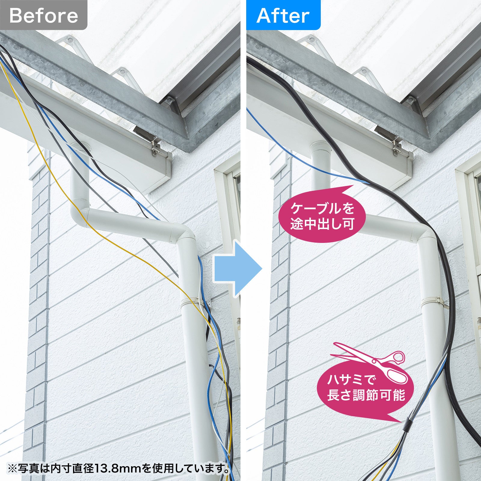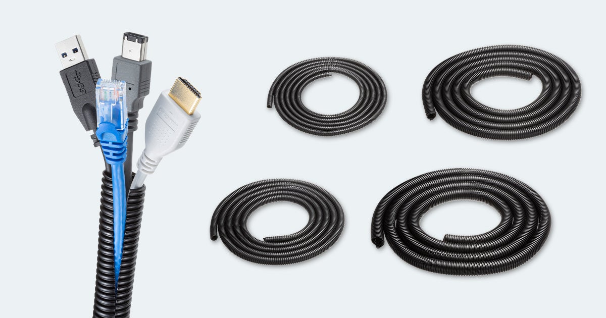ケーブルをすっきりまとめ、必要な位置から出すことができるコルゲートチューブを発売
