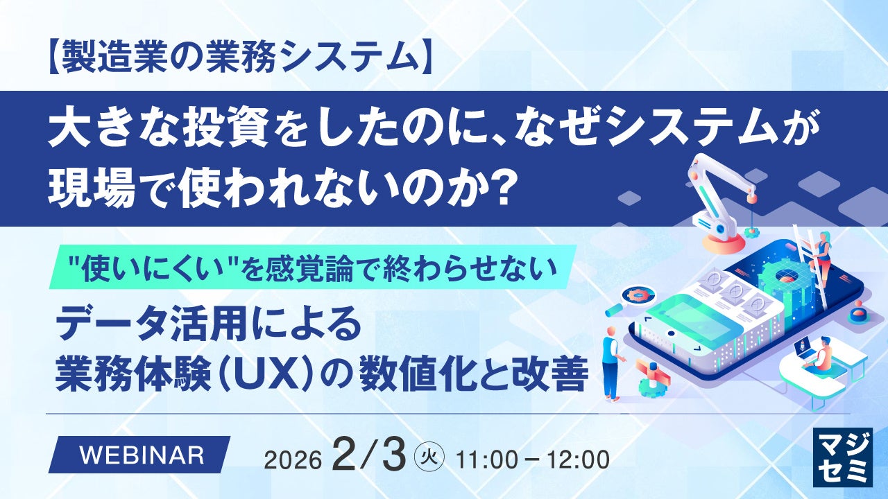 マジセミ株式会社は「【製造業の業務システム】大きな投資をしたのに、なぜシステムが現場で使われないのか?」というテーマのウェビナーを開催します。