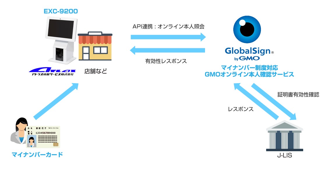 今回の協業により、アトラス情報サービスの顔認証対応カードリーダー「EXC-9200」と、GMOグローバルサインが提供するマイナンバーカードを活用した公的個人認証プラットフォーム、マイナンバー制度対応「GMOオンライン本人確認サービス」を連携させ、顔認証とマイナンバーカードの電子証明書を組み合わせた、確実な本人確認ソリューションの開発を目指します。