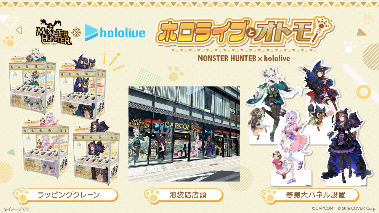 さらに「プラサカプコン 池袋店」ではスペシャルコラボ店舗として「モンスターハンター×ホロライブゲーマーズ」のウィンドウ装飾を展開。またゲーマーズの方々による等身大パネルも設置いたします。