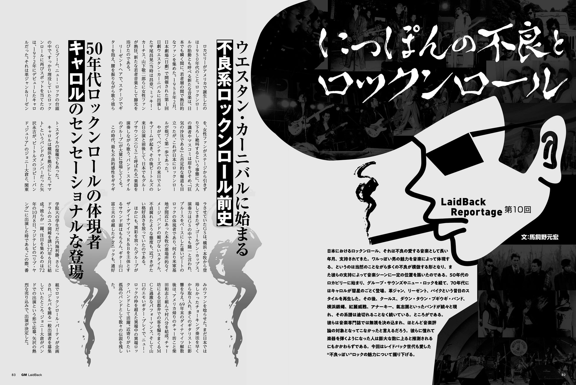日本におけるロックンロール、それは不良の愛する音楽として長い年月、支持されてきた。ワルっぽい男の魅力を音楽によって体現する、というのは当然のことながら多くの不良が模倣する形となり、また彼らの支持によって音楽シーンに一定の地位を築いたのである。50年代のロカビリーに始まり、グループ・サウンズやニュー・ロックを経て、70年代にはキャロルが彗星のごとく登場。革ジャン、リーゼント、バイクという昔日のスタイルを再生した。その後、クールス、ダウン・タウン・ブギウギ・バンド、横浜銀蠅、紅麗威甦、アナーキー、氣志團といったバンドが続々と現れ、その系譜は途切れることなく続いている。ところがである。彼らは音楽専門誌では無視を決め込まれ、ほとんど音楽評論の対象となってこなかったと言えるだろう。彼らに憧れて楽器を弾くようになった人は膨大な数に上ると推測されるにもかかわらずである。今回はレイドバック世代も愛した"不良っぽい"ロックの魅力について掘り下げる。