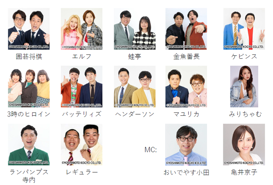 出演者:囲碁将棋、エルフ、蛙亭、金魚番長、ケビンス、3時のヒロイン、バッテリィズ、ヘンダーソン、マユリカ、みりちゃむ、ランパンプス寺内、レギュラー